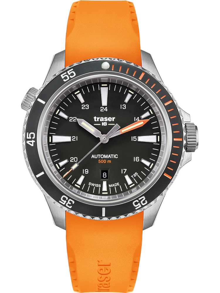 Traser 10323 Herreur med Orange Gummirem er det ideelle valg for både dykning og daglig brug.